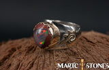 Mexican  Opal: also known as Dragon’s Breath, is a collector’s nickname for man-made stones that are made of glass and mixed with certain metals to produce a brilliant color shifting effect. Colors shift from a deep to bright red with flashes of electric blue and even purples.