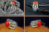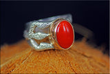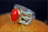 hand mad silver ring 99.9% with gold cup to hold the red coral stone.